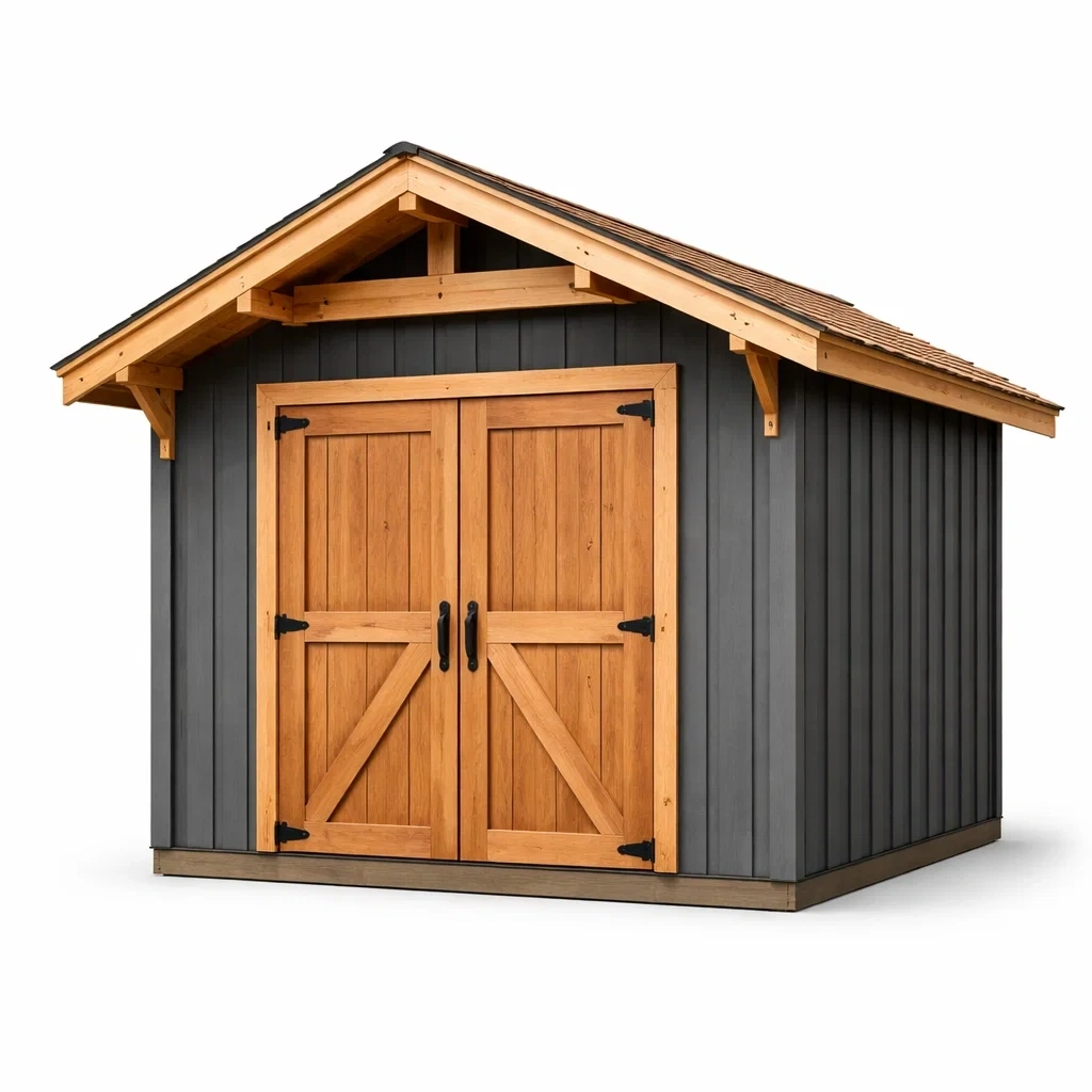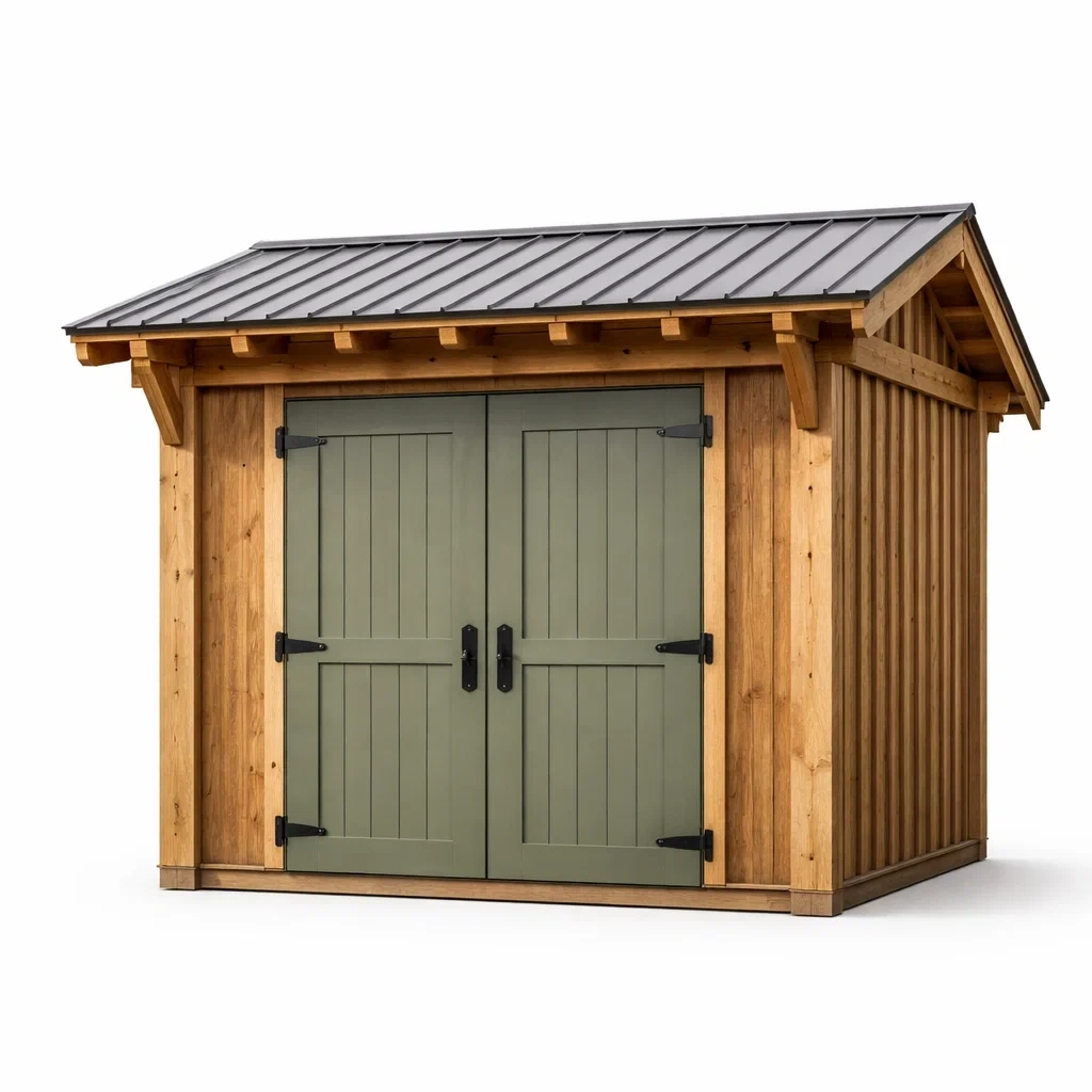 Capanno in Legno Massello con Tetto in Acciaio e Porte Verdi