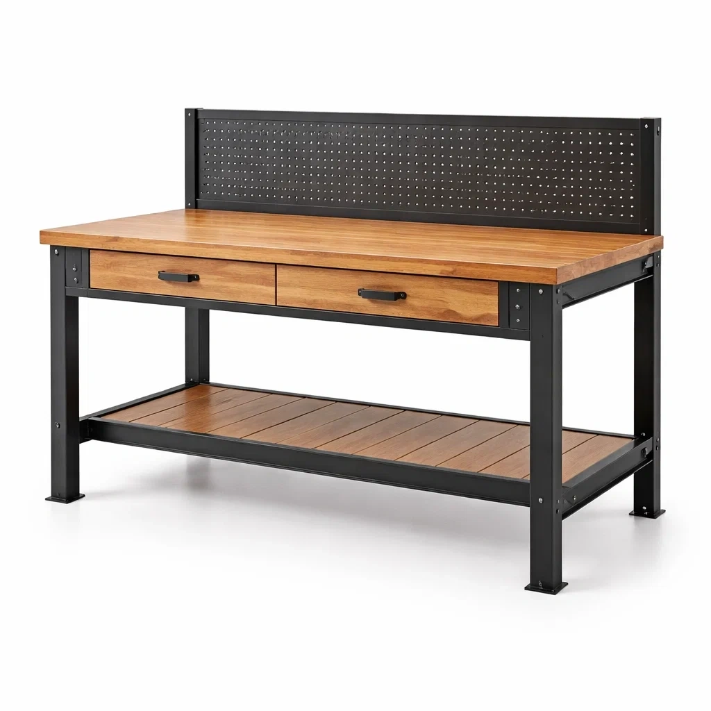 Banco da lavoro in Legno e Acciaio con Cassetti e Pannello Forato