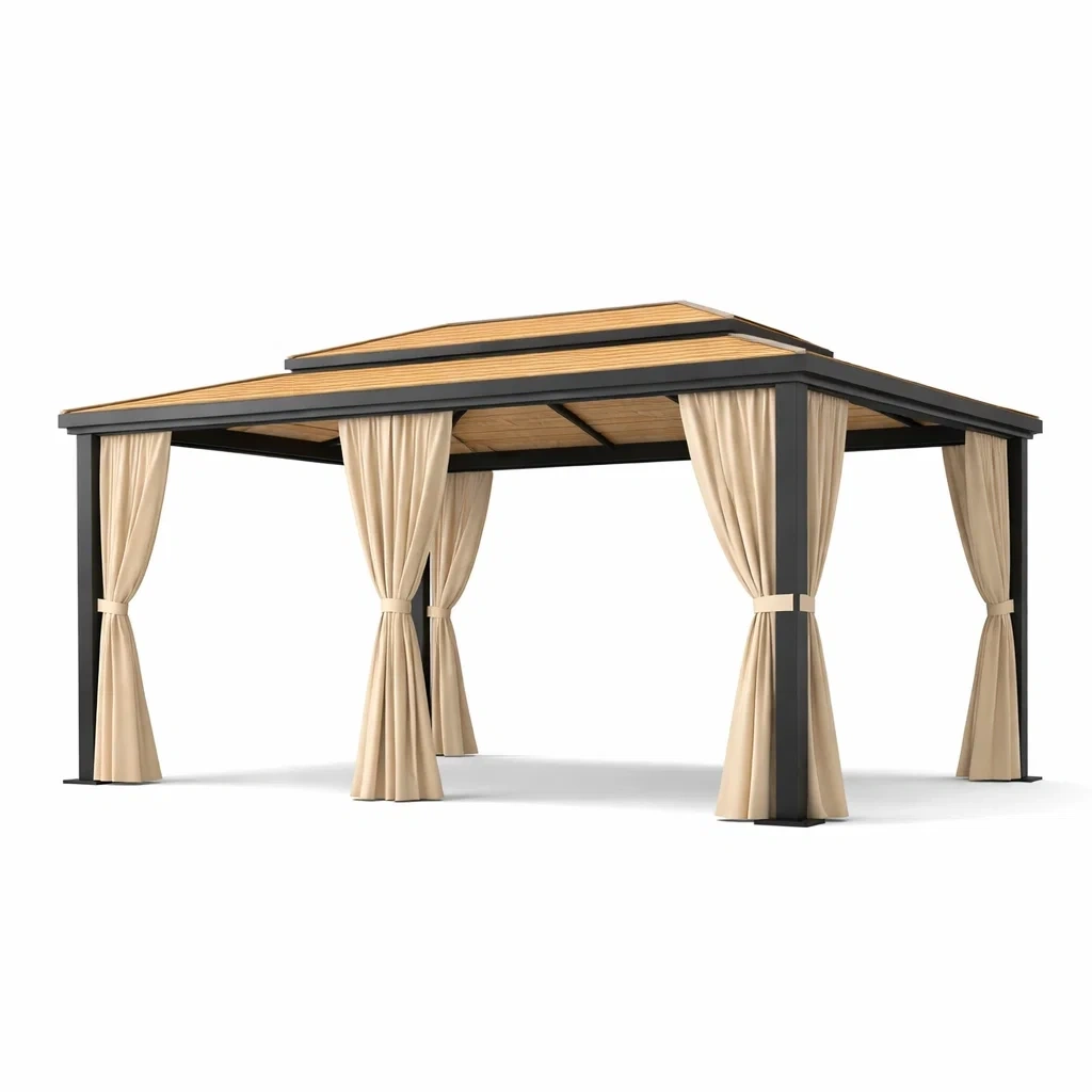 Gazebo in Alluminio con Tetto in Policarbonato e Tende in Poliestere