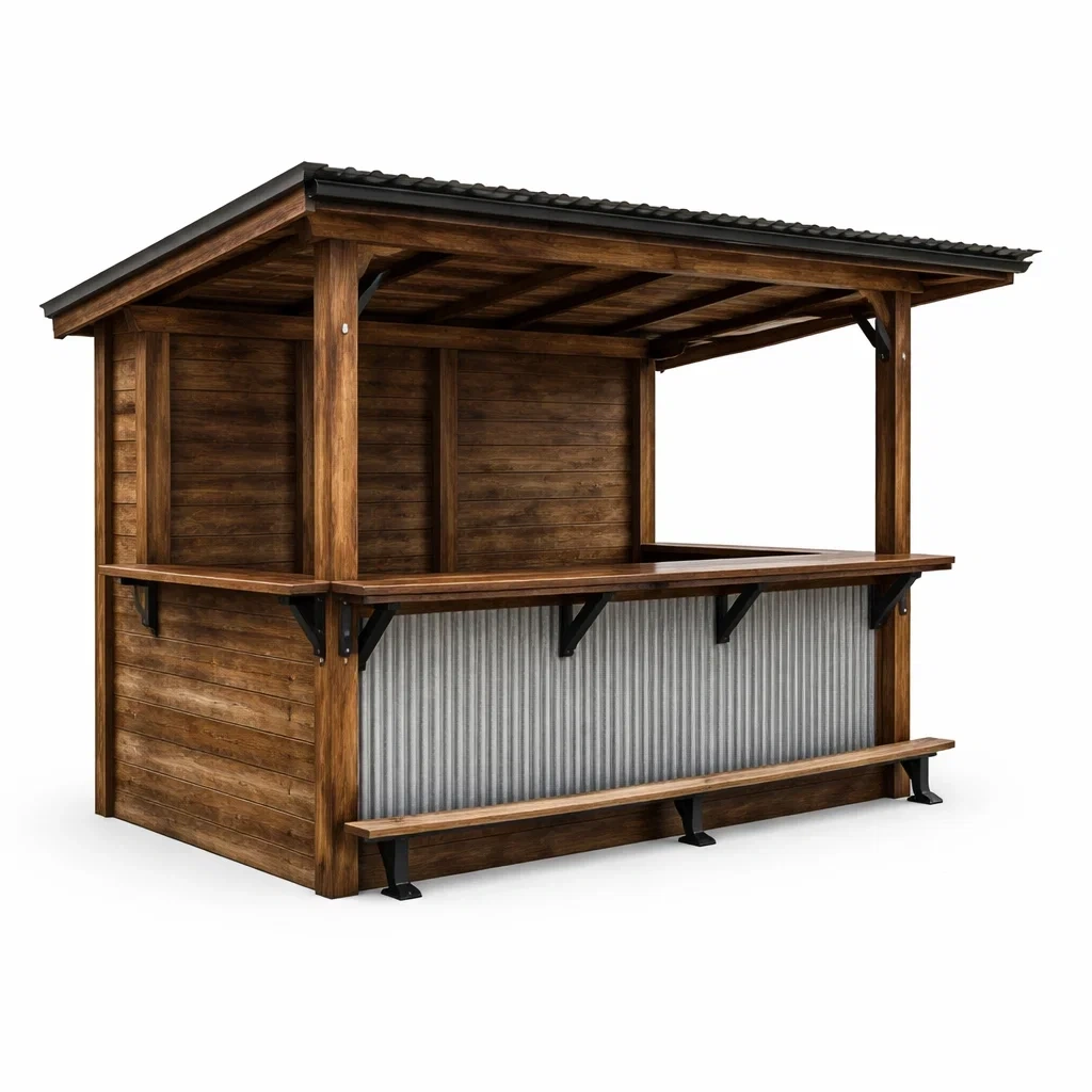Padiglione bar da Esterno in Legno e Acciaio Ondulato