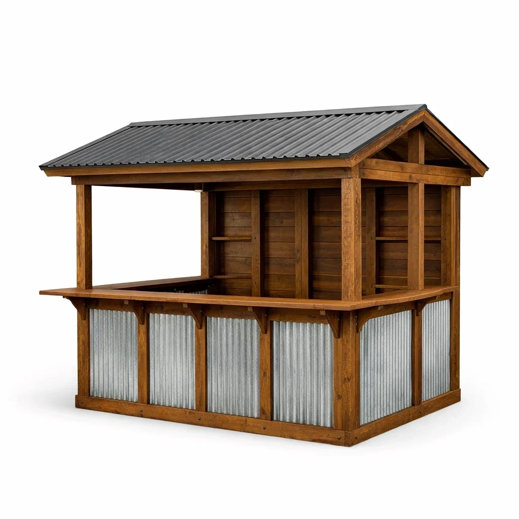 Padiglione bar per Esterno in Legno Massello di Pino e Acciaio Zincato